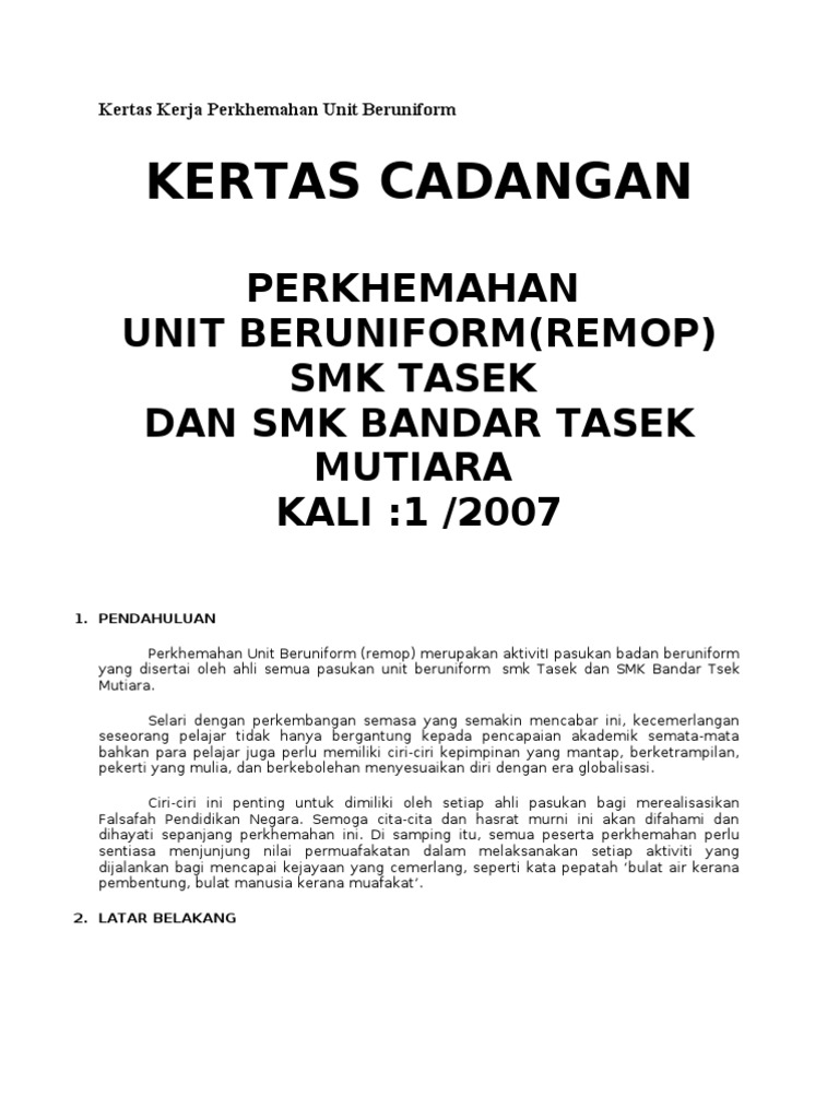 Mar 09 2014 perkhemahan unit beruniform 2012 rosdi roslindawati lin. KERTAS KERJA PERKHEMAHAN PERDANA UNIT BERUNIFORM KALI KE-16 SMK TAMAN TUN FUAD KOTA KINABALU TAHUN 2017 10 PENGENALAN Perkhemahan Perdana Unit. Kertas Kerja Perkhemahan Unit Beruniform SMK Sultan Mansor.
